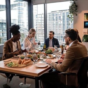 Firefly A serene family dinner scene juxtaposed with a busy office environment 65664-1